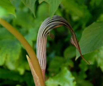 Ces plantes étranges sont de la famille de l'arum de nos sous-bois. Elles poussent d'ailleurs de la même façon. Elles ont des tubercules souterrains d'où émergent à chaque nouveau printemps les nouvelles tiges portant feuilles et inflorescences. Les Arisaema sont des plantes bien étonnantes et colorées. Elles ont presque des allures de plantes tropicales et on aurait presque peur de les cultiver en les voyant. Pourtant, parmi les très nombreuses espèces, un nombre important se cultive très bien sous nos climats et se gardent des années. La diversité des formes et tailles des feuillages est étonnante tout comme la richesse de la palette de couleurs et formes des inflorescences. Je trouve ces plantes extraordinaires. En respectant un minimum leurs exigences, on les conservera sans souci. On plantera donc les tubercules à environ 20 cm de profond minimum (surtout dans les régions froides), à l'ombre ou mi-ombre, dans un sol frais, drainant et riche en évitant la terre de bruyère qui se compacte trop, devient asphyxiante et fait pourrir les racines. Une bonne terre de jardin peut faire l'affaire et vous pouvez y ajouter un peu de terreau grossier. Les Arisaema supportent très bien la culture en pot mais méfiance lors des hivers trop froids sur de longues périodes. Avec leur port généralement assez dressé et leurs floraisons printanières, les Arisaema peuvent être plantés parmi d'autres vivaces basses que traverserons leurs tiges. Une fois fanés et au repos, la plante basse prendra le relais. J'aime beaucoup les Arisaema avec les feuillages de fougères, de Coptis, de corydales, de géraniums vivaces ou encore d'Anemonopsis.
