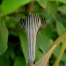 Arisaema fargesii est une superbe espèce à grandes feuilles composées de 3 larges folioles vert brillant. En juin, belles inflorescences pourpres striées de blanc. Plantée dans notre jardin depuis 8 ans, la plante prospère seule et fleurit chaque année. Attention, la plante prend son temps au printemps et les feuilles et fleurs sortent de terre seulement début juin !