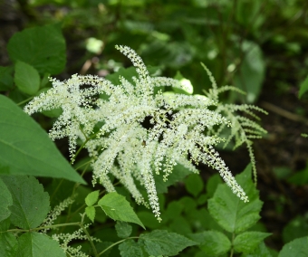 Astilbe thunbergii est une grande plante de 50/80 cm de haut portant en été de grands plumeaux blancs. Une très jolie vivace facile à cultiver en situation ombragée dans un sol pas trop sec. z5. Nos plants sont issus de graines collectées au Japon.