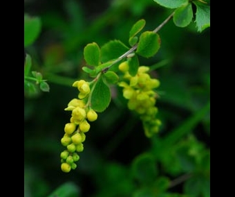 Berberis chinois gracieux aux petites feuilles vert tendre et aux tiges souples, épineuses, très belles inflorescences au printemps en petits grappes de fleurs jaune clair. Coloration automnale intense bordeaux et fructification en baies rouges allongées.