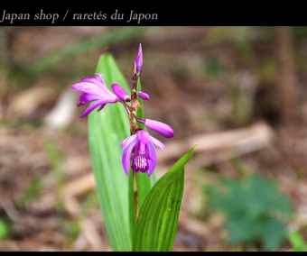 Bletilla striata a des fleurs pourpres ou parfois blanches, en mai-juillet. Elle atteint 50 cm en tous sens environ. On la plantera dans un lieu abrité des vents froids de l'hiver. z7