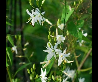 Chlorophytum heyneanum a de longues et fines feuilles rappelant une graminée. En fin de printemps/début d'été, elle se couvre de fleurs blanc pur. z6