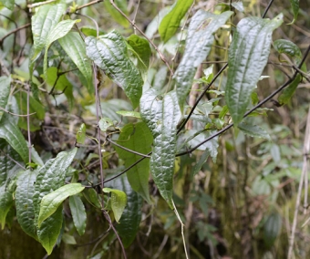 Quelle beauté ! En voilà une clématite originale. Tout d'abord ses grandes feuilles persistantes, coriaces, souvent ponctuées d'argenté sur le limbe. En été, ses petites fleurs étoilés ont des sépales pourpre foncé contrastant nettement avec le bouquet d'étamines blanches au centre. Sa rusticité la réserve malheureusement aux régions pas trop froides (-10°C environ). Ailleurs, comme chez nous, elle supporte très bien la culture en pot. Un seul jeune plant disponible cette année.
