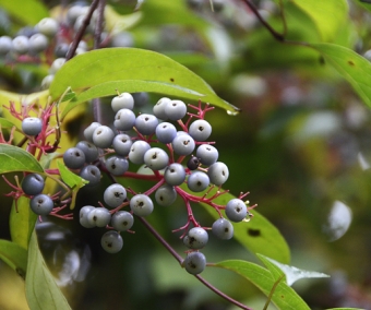 Cornus asperifolia est un arbuste de 2 à 3 m de haut à feuilles vertes, caduques, ovales. En automne, elles prennent de très belles teintes. L'arbuste de couvre d'inflorescences blanches au printemps. Elles sont suivies de fruits vert-bleuté, superbes, originaux et en nombre. Un arbuste beau en toutes saisons. Culture très facile au soleil ou à mi-ombre, dans toute terre de jardin, croissance rapide et très rustique.