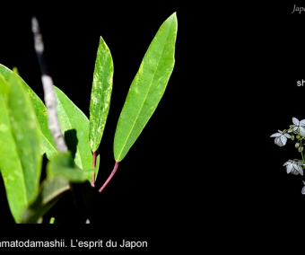 'Hisame' est une variété que j'ai introduite du Japon. Ses feuilles sont légèrement ponctées de blanc et jaune. Je l'ai nommée 'Hisame' qui signifie 'grêle, pluie gelée' en japonais.
