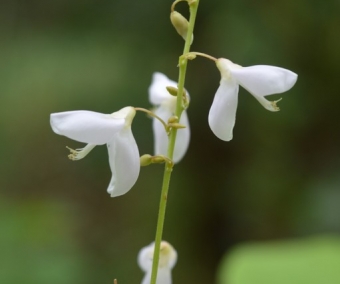 Desmodium elegans est un élégant arbuste à feuilles composées de 3 folioles larges. En été, il se couvre de fleurs blanc rosé. A planter au soleil dans un sol bien drainé mais ne desséchant pas trop en été. z6.
