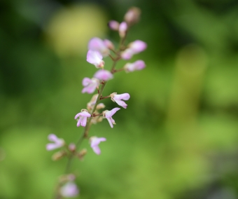 Ce genre comprend plusieurs espèces plus ou moins arbustives mais il s'agit là d'une plante vivace dont l'habitat se trouve en sous-bois. Ses tiges portent de grandes feuilles composées de 3 larges folioles. Au printemps, longues et fines inflorescences dressées de fleurs rose-mauve clair. Une élégante plante qui atteint environ 40 cm de haut à la floraison. A planter en situation ombragée dans un sol pas trop sec. La plante disparaît en hiver.