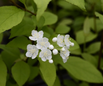 Cette espèce forme un joli buisson dense de 1 à 1.5m de haut environ. En juin, il se couvre de nombreuses inflorescences blanc pur. Un arbuste facile et florifère pour le soleil ou l'ombre légère dans toute terre de jardin. Très rustique. Plants de 40/60 cm.