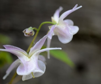 Un bel hybride japonais aux fleurs longuement éperonnées et d'un violet soutenu. Le bout des éperons est blanc. Hauteur moyenne. Caduc.