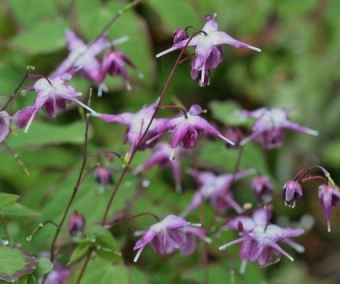 Espèce introduite en culture il y a fort longtemps. Avant 1830, la seule espèce connue des jardiniers était E.alpinum. Quand E.grandiflorum a été introduit, il a donc suscité un grand intérêt. Deux variantes ont alors été introduites du Japon par Siebold et elles faisaient partie des 260 plantes survivantes sur les 1 200 collectes qu'il avait alors réalisé. C'est une espèce très variable au niveau de la couleur des fleurs (blanches, jaunes, roses, rouge-pourpre ou violettes) et de nombreuses formes ont été décrites. Elle est également à l'origine de nombreux hybrides ou cultivars bien connus (x rubrum, x youngianum, x versicolor, ‘Lilafee'. . . ). Elle est originaire du Japon jusqu'au nord de la Corée et le sud de la Mandchourie. Son feuillage est caduc.