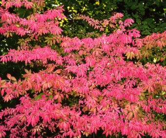 Un très beau fusain ailé asiatique dont la principale particularité est de posséder des tiges 'ailées' ('crêtes' de liège le long des tiges) très graphiques en hiver quand les feuilles sont tombées. L'arbuste a un port souple, et se pare de superbes couleurs rouges en automne. Les fruits sont également décoratifs, de couleur pourpre contenant des graines orange vif. hauteur adulte : 2 à 3 m