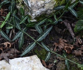 Une belle et originale forme issue d'une collecte dans le Sichuan en Chine, avec des feuilles allongées, vert foncé, nervurées de blanc-argenté. Un beau couvre-sol pour toute situation ombragée, dans un massif ou une rocaille.