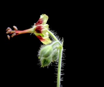 Voici un géranium vivace de Chine encore très rare en culture. C'est une superbe espèce, très différente des autres géraniums que nous connaissons bien. La plante forme une jolie touffe de feuilles vertes et lobées. En mai ou juin, nombreuses inflorescences dressées au-dessus du feuillage portant des fleurs dont les pétales sont fortement recourbés vers l'arrière. Ceux-ci sont dans les tons de jaune pâle avec une large macule pourpre. Culture facile à mi-ombre, dans une bonne terre de jardin pas trop sèche.