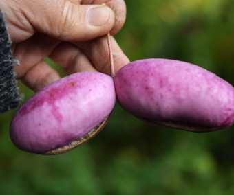 Holboellia angustifolia est une plante très variable au niveau de la forme de ses feuilles. Ses fleurs mâles sont blanches et les fleurs femelles sont rose-pourpre, elles sont parfumées et apparaissent au printemps. La plante atteint 3 à 4 m de haut dans nos jardins. z6. Cette forme est issue d'une plante cultivée au Royal Botanic Garden d'Edimbourg en Ecosse. Ses fruits sont particulièrement colorés. Plants de 60/80 cm environ.
