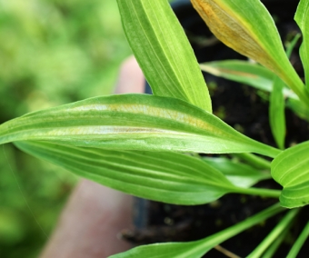 'Yoshino Gawa' a des feuilles étroites, striées de blanc crème, particulièrement au printemps. Culture à l'ombre dans toute bonne terre de jardin.