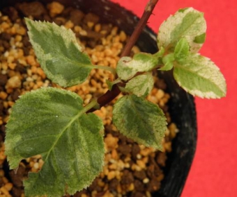 'Du Jardin d'Inuko' est une de nos sélections. Ses feuilles sont panachées de vert foncé, vert clair et blanc-crème. Une variété lumineuse.