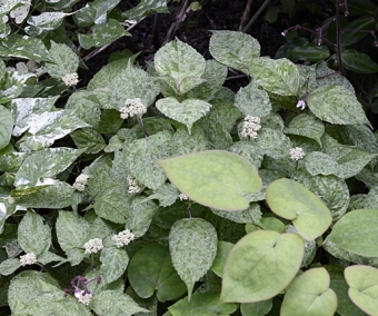 Nous avions trouvé cette variété dans une pépinière lors d'un voyage au Japon. C'est une petite variété de 50/60 cm de haut dont les feuilles sont finement ponctuées de blanc. Fleurs blanches en été. Une variété très lumineuse à l'ombre.