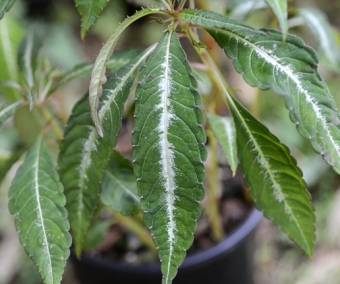 'Silver Striped' est une variété dont les feuilles sont marquées d'argenté au centre. Quantité très limitée.