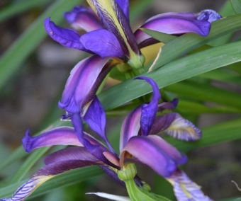 Il forme progressivement une petite touffe avec ses rhizomes fins, d'environ 30-40 cm de haut sur 40 cm de large, et les fleurs parfumées apparaissent à mi hauteur du feuillage, elles restent cependant bien visible car d'un coloris bleu violet intense.