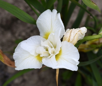 'White Swirl' est une variété aux fleurs blanches dont le coeur est marqué de jaune-orangé.