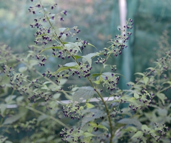 Isodon trichocarpus se distingue par ses fleurs très foncées. En effet, celle-ci sont violet sombre et offrent un superbe contraste avec les tiges et feuilles vertes. Elle a des tiges bien ramifiées et atteint environ 1 à 1.5 m de haut. Une très belle plante pour l'automne. Plants livrés en touffes fortes en age de fleurir.