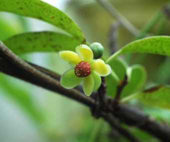 Kadsura japonica est une grimpante à feuilles persistantes (caduques en cas de grands froids). Il reste donc vert toute l'année, ce qui est intéressant si on le fait grimper pour cacher un mur moche par exemple. Celles-ci sont ovales et brillantes. Ses fleurs sont originales, solitaires, pendantes, jaune pâle, en juin-septembre. Elles sont suivies de baies rouges groupées en boules pendantes en automne. Mi-ombre ou soleil non brulant dans toute bonne terre de jardin riche, pas trop sèche et bien drainée. z7 mais mes plants supportent très bien le froid en Bourgogne contre un mur abrité des vents froids.