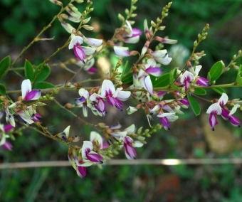 Le feuillage est assez fin pour un Lespedeza, avec des folioles vert glauque rassemblées par trois comme un trèfle