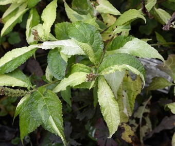 Leucosceptrum japonicum forme une touffe dense et érigée de 80/100 cm de haut environ. La floraison a lieu sous forme de longues inflorescences dressées portant de nombreuses petites fleurs jaune pâle. 'Mountain Madness' a des feuilles irrégulièrement panachées de blanc-jaunâtre. Cette variété se montre donc plus lumineuse à l'ombre. Elle est aussi plus basse et atteint environ 50 cm de haut. Culture facile en toute bonne terre de jardin. Une belle plante pour finir la saison au jardin.