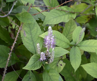 Leucosceptrum stellipilum est bien différent de L.japonicum. La plante forme une base ligneuse et les tiges portent des bourgeons en hiver. Elle atteint 60/90 cm de haut et porte des feuilles plus larges. En automne, ses épis dressés portent des fleurs mauves. Ses tiges se tiennent mieux que celles de l'espèce précédente. A découvrir, car je la trouve vraiment intéressante. z6