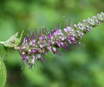Leucosceptrum stellipilum var.tosaense forme une base ligneuse et les tiges portent des bourgeons en hiver. Elle atteint 80/120 cm de haut et porte des feuilles assez larges. En automne, ses épis dressés portent des fleurs rose-mauve foncé. Une plante à découvrir, car je la trouve vraiment intéressante. z6 Touffes fortes, quantité limitée.