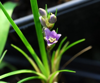 La plante a de longues feuilles très fines et retombantes qui persistent en hiver. En été, apparaissent des courtes inflorescences dressées de fleurs violettes. Une plante couvre-sol idéale en situation ombragée. Très facile, aucune exigence particulière. Quantité limitée, très rarement proposée. Issue de graines collectées au Japon.