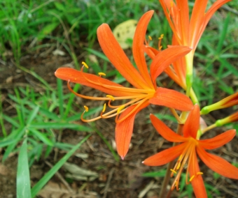 Cette bulbeuse japonaise de la famille des Amaryllis produit un gros bulbe avec de longues feuilles étroites. En fin d'été, ses inflorescences dressées portent de grandes fleurs orangées. Les feuilles apparaissent au début du printemps et les fleurs en août-septembre. Soleil ou ombre légère en bonne terre bien drainée. z7. Le prix comprend deux bulbes.