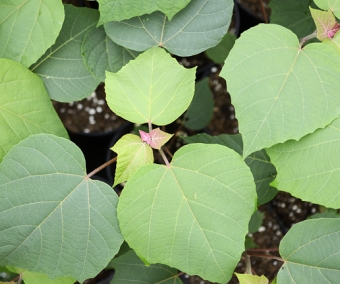Grand arbuste ou petit arbre japonais et chinois de la famille des euphorbes. De croissance très rapide, le Mallotus à de grandes et belles feuilles de 25 cm de long et 15 cm de large. C'est principalement pour son feuillage exhubérant qu'on le plante. Les fleurs jaunâtres sont disposées en nombreux épis dressés en été. Ses jeunes feuilles sont teintées de rose et rouge. Son port très ramifié s'élargit avec l'âge. En situation ventée, une petite protection hivernale peut être utile sur les jeunes plants mais une fois installé, il ne posera pas de problème. Les plants proposés mesurent 60 cm environ.