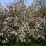 Pommier japonais qui porte bien son nom. En effet, il est très florifère et fructifère. En avril, il se couvre de boutons roses qui s'ouvrent pour donner des fleurs rose clair à blanches. Elles sont suivies en automne de petites pommes jaunes en nombre sur les rameaux. Celles-ci persistent tout l'automne et le début de l'hiver donnant un aspect très décoratif au jardin en cette saison où l'arbuste n'a plus ses feuilles. Il atteint environ 4/5 m de haut.