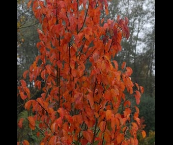 Ce pommier sauvage est mon chouchou. Une splendeur en provenance du Japon. Un arbre au port très colonnaire et dense avec des feuilles duveteuses vert-gris prenant de splendides teintes rouge-orangé en automne. Il peut atteindre 10 m de haut mais n’est pas encombrant. Ses fleurs blanches de 3 cm apparaissent en mai et sont suivies de grosses pommes (grosses pour une espèce sauvage, c’est à dire de 3 cm) jaune-vert teinté de brun-rouge en automne. A avoir absolument dans son jardin ! Plantation en isolé ou en alignement, au soleil ou mi-ombre dans toute terre de jardin pas trop sèche. z6. Nos plants sont issus de graines collectées au Japon (donc non greffés), dans la Préfecture de Toyama. Plants de 50 cm de haut environ. Quantité limitée.
