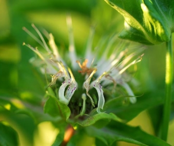 The White Bergamot, also known as Basil Bee Balm, comes from North America mountains. It's an easy perennial, which can reach 1 meter high. Grows in all good soil, full sun or very light shade.