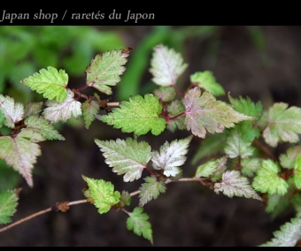 L'horticulture japonaise est très dynamique. Les japonais sont, notamment, fous de feuillages panachés, d'orchidées terrestres, de fleurs doubles ou bigarrées. J'ai toujours le souvenir de ces pépinières au Japon pleines de plantes de différentes couleurs. L'intérêt des japonais pour les plantes panachées demeure aujourd'hui fort mais n'approche pas ce qu'était il aux 18° et 19° siècles, quand la création de ces plantes semble avoir été presque une préoccupation nationale. Ces plantes, aussi bien que celles sélectionnées pour les fleurs voyantes ont été développées dans des pots et individuellement admirées plutôt qu'en tant qu'élément d'un paysage de jardin. On voit d'ailleurs beaucoup au Japon de plantes cultivées dans de petits pots en terre cuite. La plupart de ces plantes ne sont jamais sorties du Japon et les autres restent pour beaucoup uniquement cultivées dans de très rares collections. Il faut dire que certaines variétés peuvent dépasser les 100 euros le godet ! Depuis plusieurs années, nous développons notre collection et vous retrouverez dans cette rubrique, celles qui sont encore très rares et que nous proposons bien souvent qu'à l'unité. D'autres variétés, multipliées maintenant en plus grand nombre, sont intégrées à notre catalogue général.