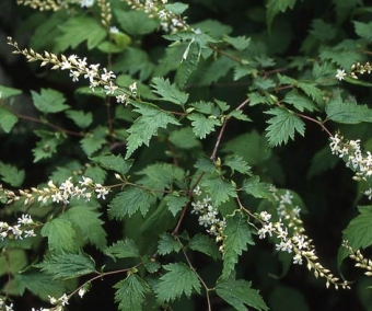Arbuste de 1.5/2 m de haut et presque autant de large aux rameaux étalés. Au printemps, ses fleurs blanches sont groupées en longues, fines et élégantes inflorescences. Ce n’est pas l’espèce la plus courante mais elle est vraiment charmante. Culture facile à mi-ombre ou au soleil, il supporte tous les terrains sauf ceux trop secs. z6