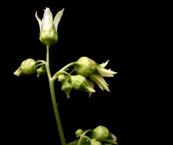 Peltoboykinia tellimoides mesure de 30 à 80 cm de haut avec de grandes feuilles arrondies et découpées. Elle porte des inflorescences de fleurs jaune pâle en été. z6