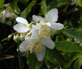 Arbuste de 1.5 m de haut environ à feuilles vertes et caduques. Au printemps, généreuse floraison blanche et parfumée. Un arbuste facile à mi-ombre ou au soleil. Croissance rapide. Plants proposés en 50/80 cm environ.