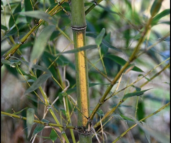Le Phyllostachys aurea est un joli bambou de taille modeste (3 à 5 m de haut) à port bien dressé et dense feuillage. 'Flavescens Inversa' a des tiges vertes avec le sillon jaune. Il forme rapidement de beaux bosquets bien denses et verts toute l'année. Il est peu traçant. Très résistant au froid.