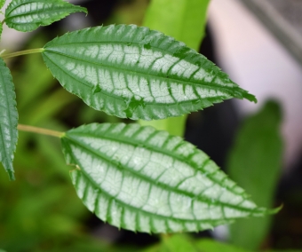 Ce Pilea a un feuillage décoratif avec ses feuilles dentées, vertes marquées de larges bandes gris-argenté. Un feuillage vraiment ornemental. Peut se cultiver dans les coins très sombres et humides. Espèce encore non identifiée, issue d'une collecte dans les montagnes du Yunnan en Chine. Attention, plants disponibles courant septembre 2016, quantité très limitée, à réserver dès maintenant !.