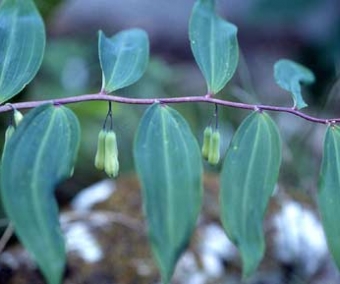 Un sceau de Salomon originaire de Chine, aux feuille vert sombre légèrement strié de vert plus clair, et aux fleurs allongées et pendantes vert clair, éclosant au printemps. Tiges courbées d'environ 40 à 50 cm. Se cultive en situation ombrée, dans une bonne terre de jardin, pas trop sèche. Parfaitement rustique. Quantité limitée.