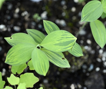 Polygonatum involucratum est une espèce assez petite, de 30 cm de haut environ. Ses tiges portent des feuilles arrondies. En mai-juin, elle porte des fleurs blanc-verdâtre, pendantes, largement surmontées de deux grandes bractées vertes. Un effet original. z6