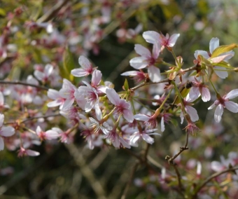 Ce prunier japonais est un hybride entre Prunus apetala et Prunus leveilleana originaire de l'île principale du Japon, Honshu. On le trouve surtout dans les Districts de Chubu et Nikko, et c'est précisément là que nous avons collecté nos graines. C'est un petit arbre à feuilles obovales-elliptiques de 6/11 cm de long. Il fleurit tôt au printemps, avec des fleurs blanches teintées de rose pâle. Très belle écorce grise striée. Un beau petit prunier d'ornement, rare en culture.