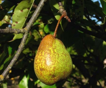 Joli petit poirier obtenu en Chine et encore rarissime en culture. Il résulte de l'hybridation entre deux espèces. L'arbre porte de grandes feuilles toujours bien vertes et saines. Floraison blanche au printemps suivie de belles poires tout à fait délicieuses. Elles ont une chair blanche et arrivent à maturité en fin d'été ou début d'automne. Elles se conservent bien. L'arbre est très résistant au froid et aux maladies. Il n'est pas auto-fertile et un autre poirier est indispensable dans le voisinage pour la pollinisation. Plants de 40/50 cm de haut.