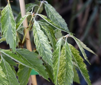 'Ishii' est une variété japonaise aux feuilles panachées. L'arbre reste bien plus petit que le type et pourra donc trouver sa place dans des jardins plus petits. Plants de 80/100 cm, quantité très limitée. Livraison à partir de mi- à fin février selon météo.