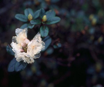Rhododendron anthopogon est un arbrisseau himalayen. Je me souviendrais toujours de ces parterres de fleurs à 3500m d'altitude au Népal, sous la pluie, rendant ses fleurs translucides (2° photo). C'est donc un arbuste bas, se couvrant de fleurs blanc crème. Lorsqu'elles sont mouillées, elles deviennent translucides. Un petit rhododendron à planter à mi-ombre dans les régions où le soleil tape fort ou au soleil ailleurs. Idéal en massif, rocaille, auge... quantité limitée.