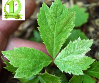 Rodgersia podophylla peut atteindre 1.5 m de haut au moment de la floraison, en fin de printemps - début d'été. Ses feuilles sont composées de folioles échancrées et dentées au sommet. 'Aka Un' est une rare variété japonaise dont les jeunes feuilles sont discrètement panachées de blanc-crème.