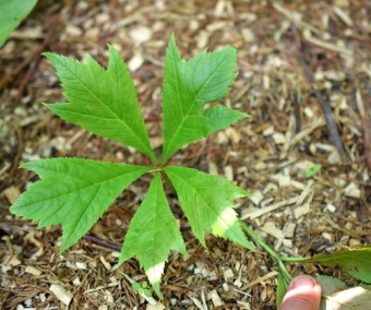 Rodgersia podophylla peut atteindre 1.5 m de haut au moment de la floraison. Ses feuilles sont composées de folioles échancrées et dentées au sommet.